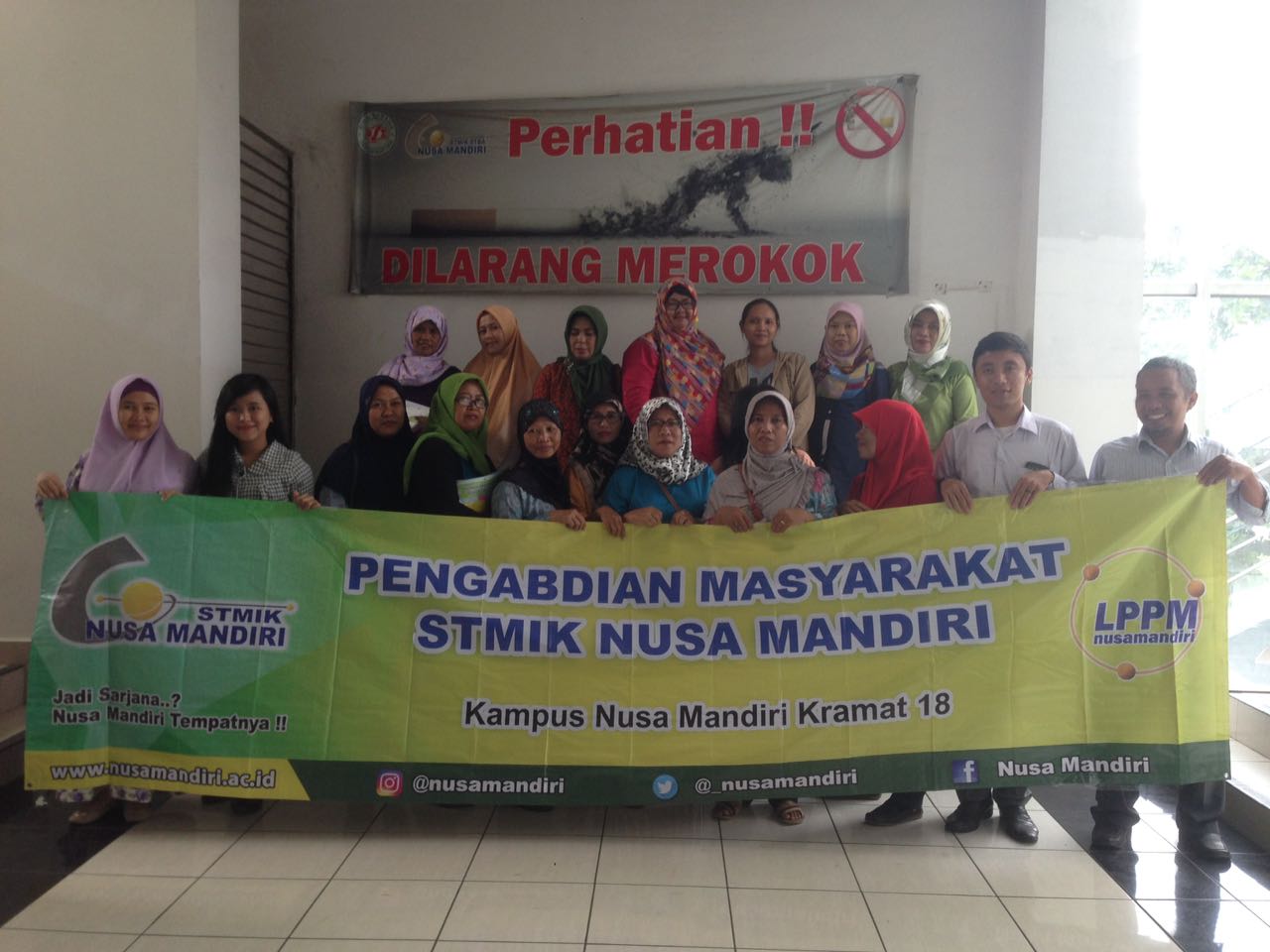 Kewajiban setiap Perguruan Tinggi sebagaimana dijelaskan dalam Tridharma Perguruan Tinggi adalah Pendidikan, Penelitian, dan Pengabdian Masyarakat. Oleh karena itu STMIK Nusa Mandiri Jakarta melaksanakan Pengabdian Masyarakat, hal ini dilaksanakan berkaitan dengan kepedulian setiap lembaga atau institusi yang bergerak di bidang Pendidikan khususnya Pendidikan Tinggi dengan mengikuti perkembangan dan kemajuan teknologi khususnya Indonesia sebagai satu negara yang memiliki potensi sumber daya alam dan manusia untuk dimanfaatkan sebaik mungkin demi kemajuan bangsa.