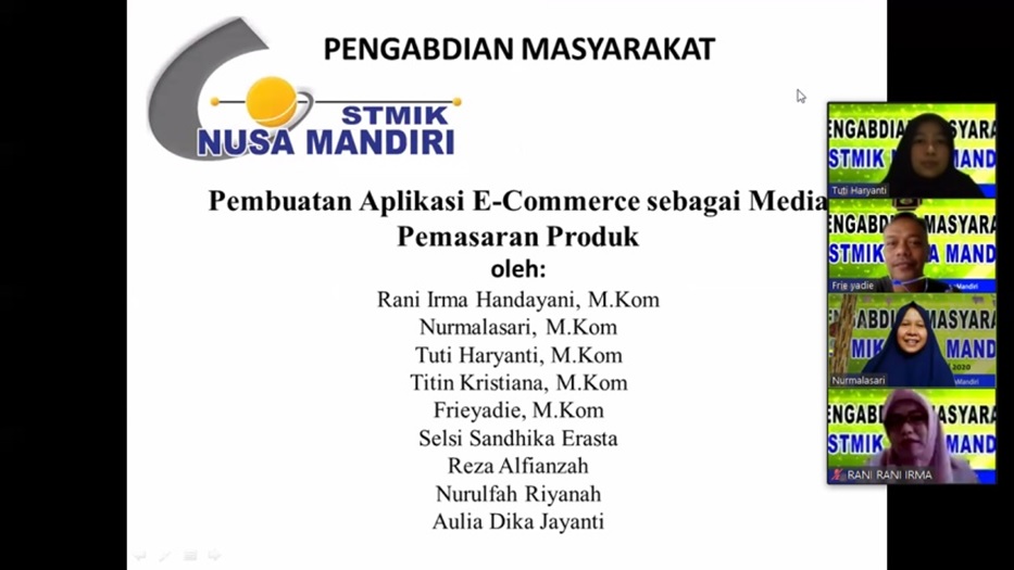Abdimas: Dosen STMIK Nusa Mandiri Mengadakan Kegiatan Pembuatan Aplikasi E-Commerce sebagai Media Pemasaran Produk Untuk Komunitas MeRsi Funs Club (MFC) Secara Online