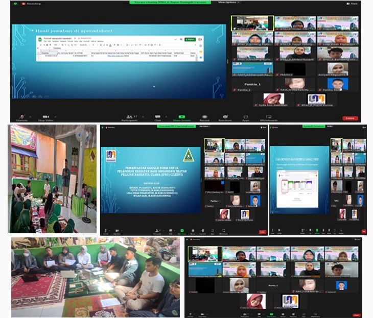 Acara ini dilaksanakan secara Hybrid menggunakan aplikasi Zoom Meeting dan pada IPNU Kecamatan Ciledug, karena mengingat pandemi covid-19 yang sudah menurun belakangan ini. Dalam kegiatan ini, banyak peserta lembaga yang hadir dan sangat antusias mengikutinya. Dari pihak Universitas Nusa Mandiri, hadir beberapa dosen yaitu Ibu Endang Pujiastuti, M.Kom, Ibu Yuyun Yuningsih, M.Kom, Ibu Wulan Dari, M.Kom dan Ibu Lusa Indah Prahartiwi, M.Kom, serta perwakilan dari beberapa mahasiswa yang ikut menjadi peserta dalam kegiatan pengabdian masyarakat ini.