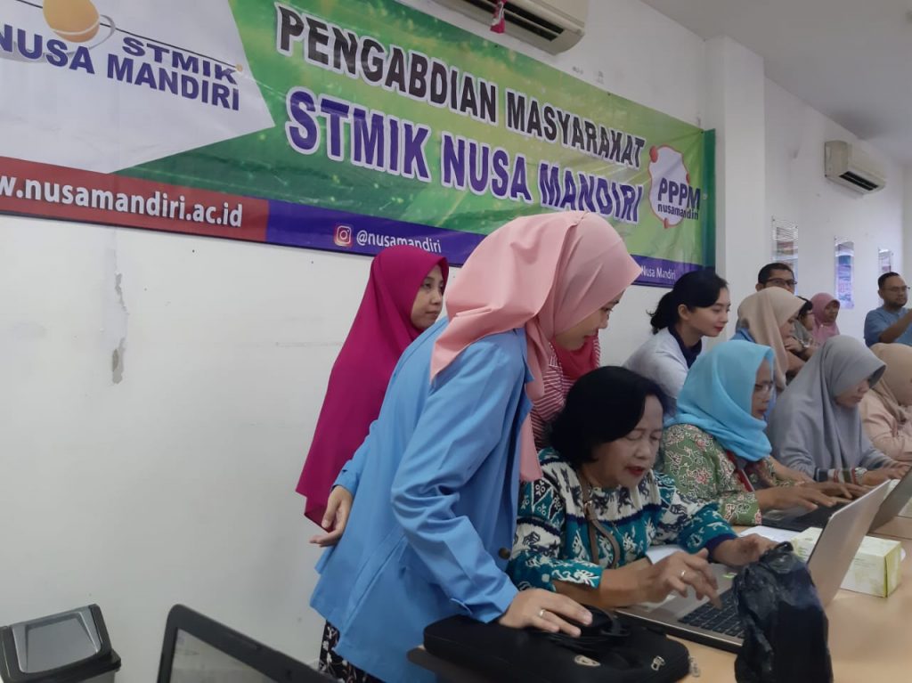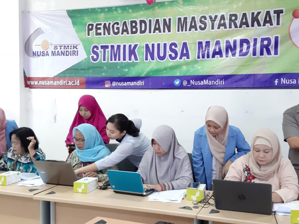 Ibu Hylenarti dibantu empat dosen Program Studi Sistem Informasi STMIK Nusa Mandiri lainnya, yaitu Bu Laela, Bu Sukmawati, Bu Lilyani, dan Pak Anton melaksanakan pelatihan ini pada tanggal 2 November 2019 bertempat di Kampus STMIK Nusa Mandiri diikuti oleh 21 anggota PKK.