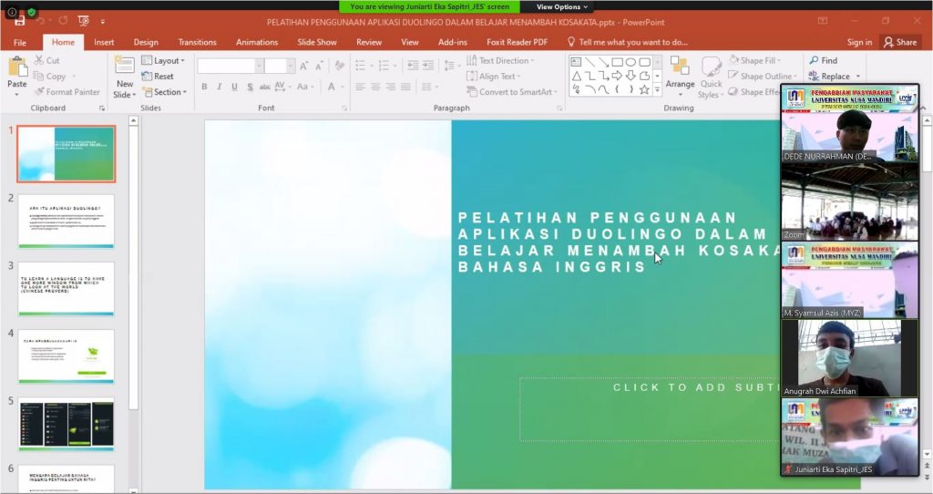 Home / Berita Terbaru / Pelatihan Penggunaan Aplikasi Duolingo Dalam Belajar Menambah Kosakata Bahasa Inggris