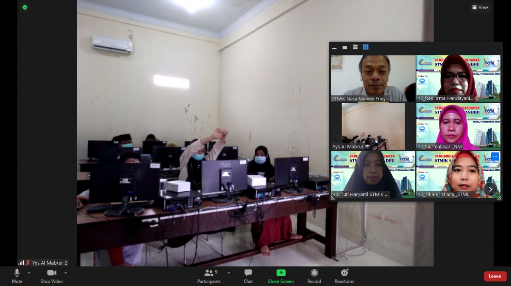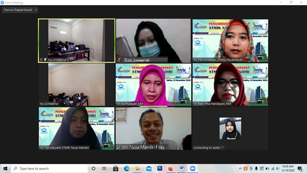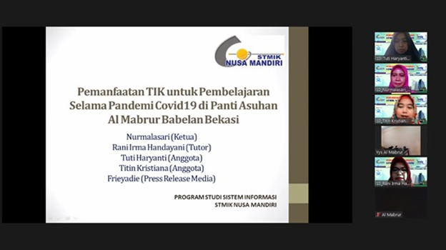 Pelaksanaan pengabdian masyarakat kali ini, masih dilanda pandemic Covid-19, dimana pelaksanaan tersebut dilaksanakan secara daring dengan memanfaatkan media Zoom meeting. Selain itu pada Panti Asuhan Al Mabrur Babelan, ada dari tim yang mengarahkan untuk kegiatan online.
