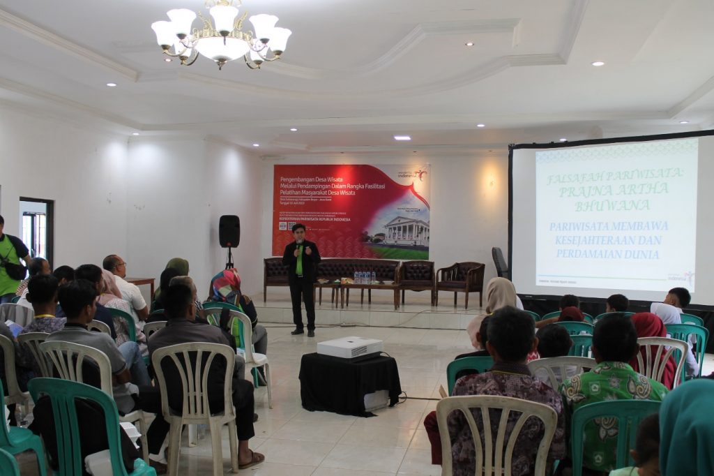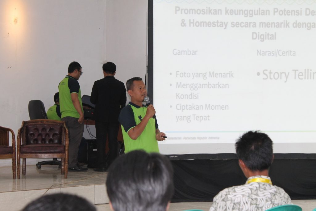 Dalam pelatihan pendampingan wisata tersebut disampaikan materi yang pertama yaitu tentang sadar wisata dan sapta pesona yang disampaikan oleh bpk. Esron Rikardo Nainggolan, M.Kom. Esron Rikardo Nainggolan menyatakan perlunya sadar wisata  dan penerapan sapta pesona untuk menumbuhkan semangat masyarakat dalam mengembangkan desa wisata dan saling gotong royong untuk mewujudkan desa sukawangi menjadi desa wisata.