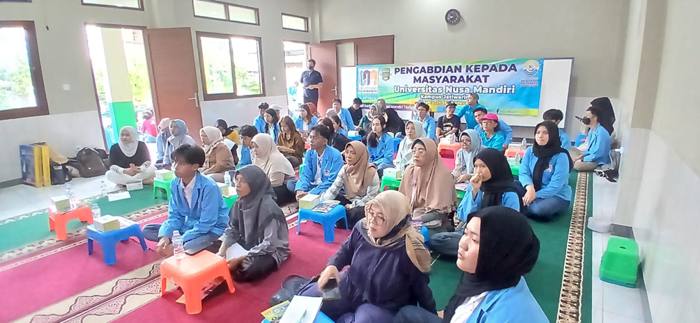 Pelatihan ini dipandu oleh perwakilan dosen dan beberapa mahasiswa Universitas Nusa Mandiri, yakni Ibu Wulan Dari, M.Kom., Ibu Lusa Indah Prahartiwi, M.Kom., dan Ibu Ari Puspita, M.Kom. Materi yang disampaikan meliputi pengenalan dasar penggunaan aplikasi digital, strategi pemasaran melalui media sosial, serta pemanfaatan layanan keuangan digital yang aplikatif dalam kehidupan sehari-hari.