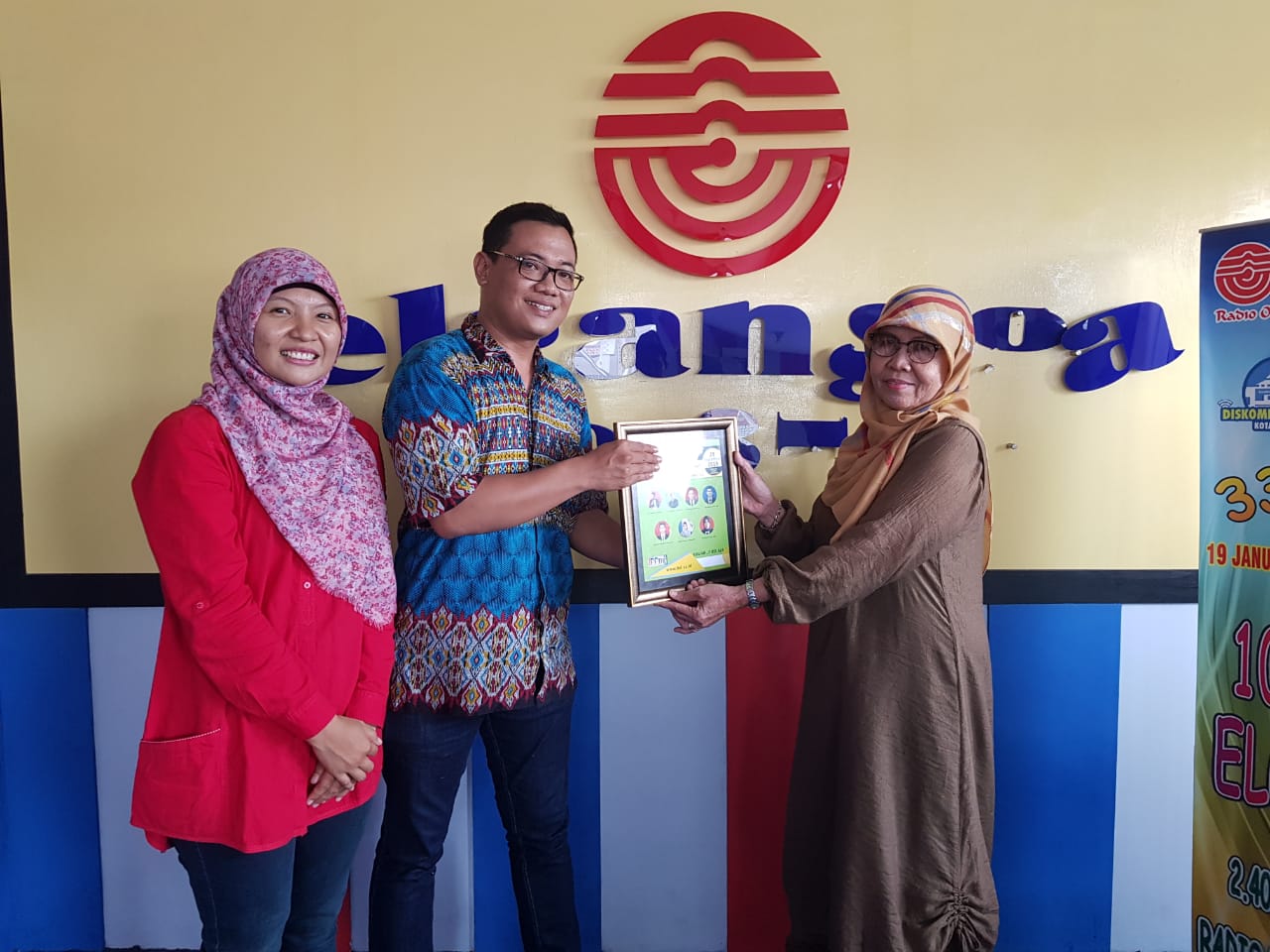 Kegiatan Pengabdian Masyarakat berakhir pada pukul 12.00 WIB diakhiri dengan foto  bersama dengan seluruh peserta yang hadir dan penyerahan plakat kepada radio Elgangga sebagai bentuk kerjasama.