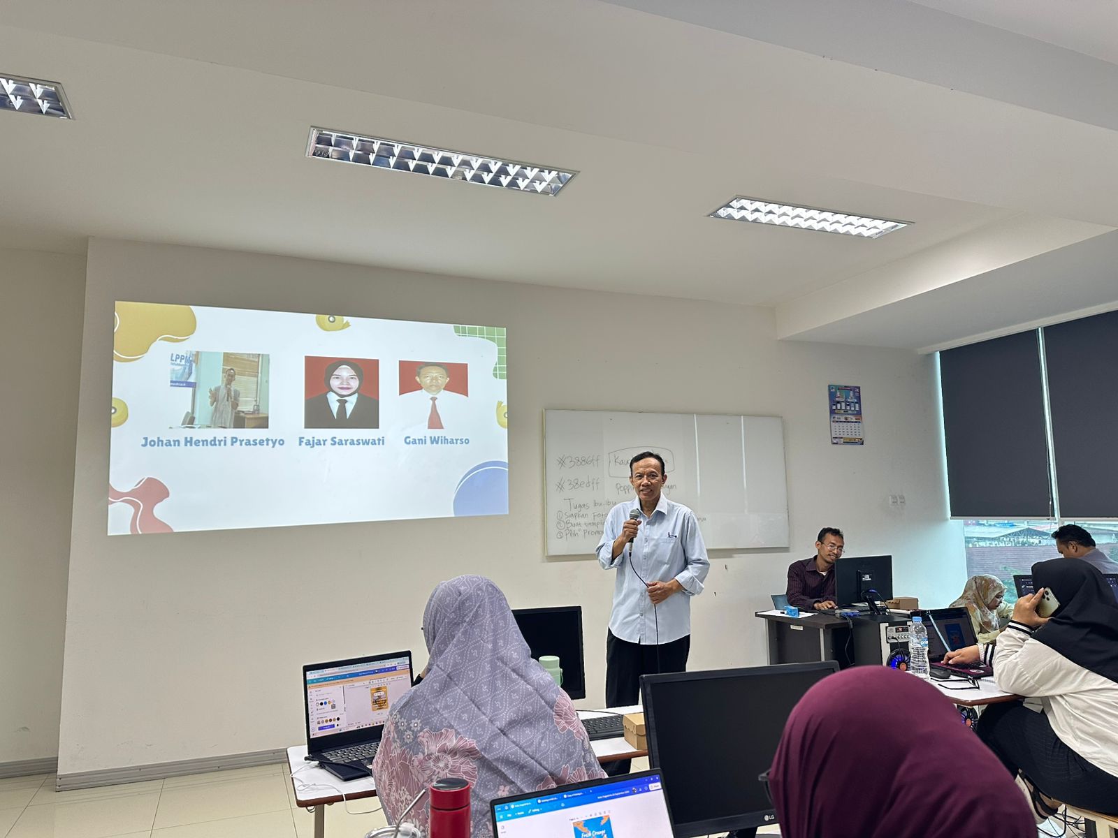 Kegiatan ini dipimpin oleh Fajar Sarasati, M.Kom. selaku Ketua Pelaksana Pengabdian Masyarakat, didampingi oleh dua mentor, yaitu Gani Wiharso, SE,. M.M dan Johan Hendri Prasetyo, S.E.M.M., serta melibatkan tiga mahasiswa dari Program Studi Bisnis Digital sebagai bagian dari tim pelaksana.