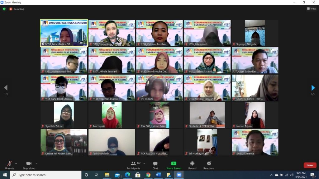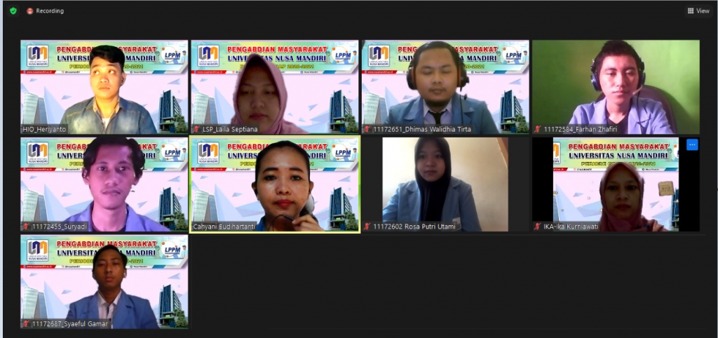 Jakarta – Lebih dari satu tahun virus Covid-19 telah masuk ke Indonesia, yang membuat banyak aktivitas menjadi dibatasi ruang geraknya. Sesuai peraturan pemerintah, protokol Kesehatan diterapkan untuk memutus mata rantai penyebaran virus Covid-19, yaitu dengan cara memakai masker, mencuci tangan dan menjaga jarak aman. Namun dengan kondisi tersebut tidak mematahkan semangat para dosen Universitas Nusa Mandiri untuk melakukan Tridharma, salah satunya adalah dengan melakukan Pengabdian Kepada Masyarakat.