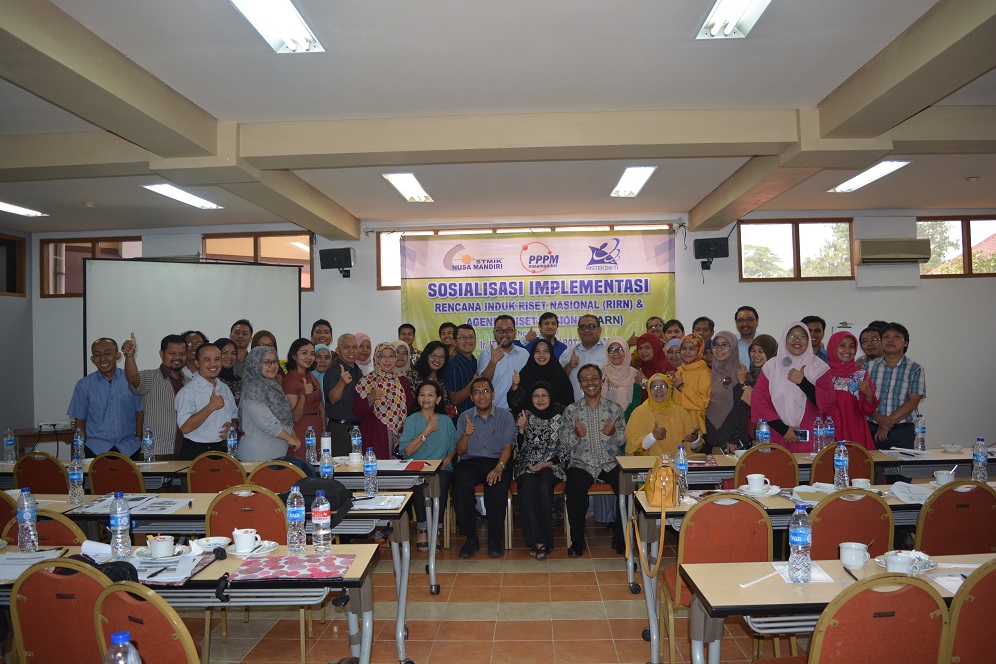 Dipagi yang cerah di Kota Depok Jawa Barat, tepatnya di Wisama Makara UI Depok Jawa Barat, tanggal 12 September 2017, Ditjet Penguatan Riset dan Pengembangan bekerjasama dengan STMIK Nusa Mandiri Jakarta menggelar kegiatan Sosialisasi Implementasi Rencana Induk Riset Nasional (RIRN) dan Agenda Riset Nasional (ARN). Acara tersebut dihadir oleh Dr. Mochamad Wahyudi, MM, M.Kom, M.Pd selaku Ketua STMIK Nusa Mandiri Jakarta, Frieyadie, S.Kom, M.Kom, selaku Ketua Pusat Penelitian Pengabdian Masyarakat (PPPM) STMIK Nusa Mandiri Jakarta, dan juga dihadiri oleh Ketua LPPM, Dosen berbagai perguruan tinggi seputar Jabodetabek.